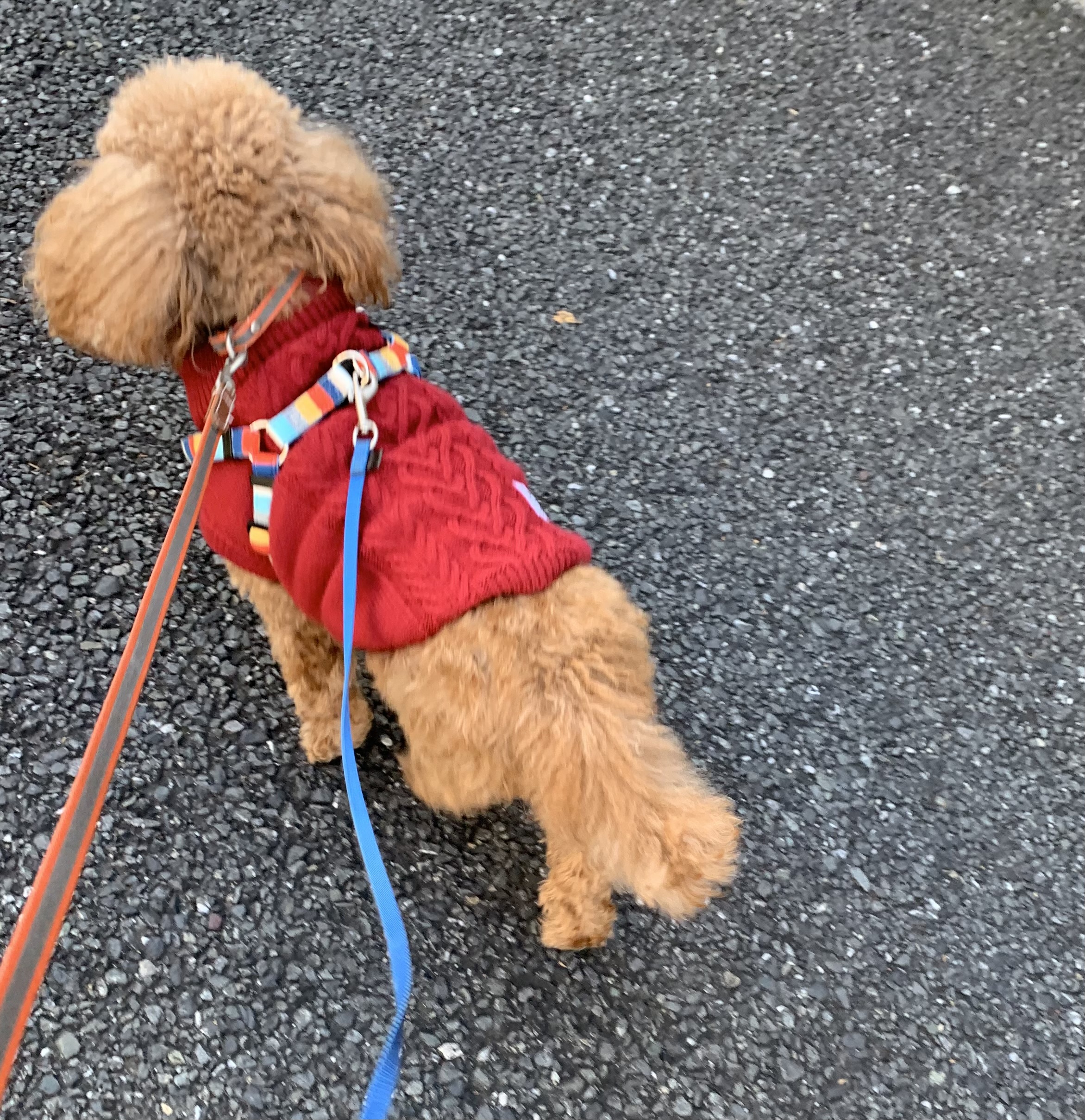 花ちゃんは 寒がりで 散歩に出ようと