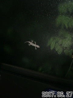 今年もヤモリが挨拶にきました。キッチンの東側の窓です。