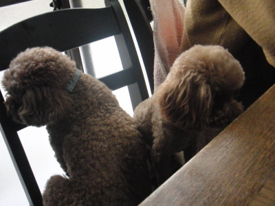 モカとモルトはライバル同士。ママを取り合う関係です。で 一緒に椅子に乗ってもこんな感じです。