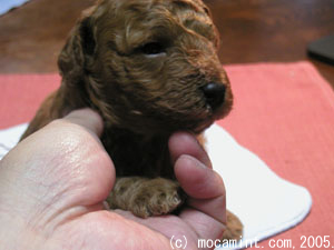 へその緒もすでに取れ、きのう断尾も終わりました。(生後3日までなら倫理的には問題ないとのこと。=赤ちゃんが痛さを感じない。JAHAの動物病院での時代背景を考慮した現状解釈とこちらが解釈しました。断尾しないトイプードルの世論形成がのぞましいとのこと)