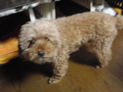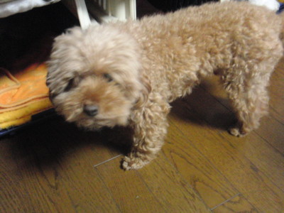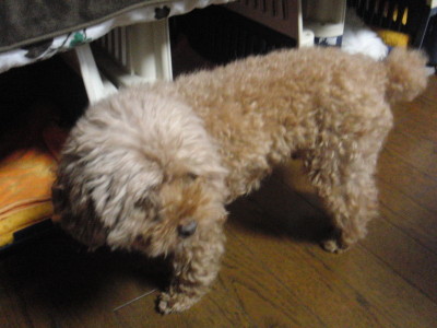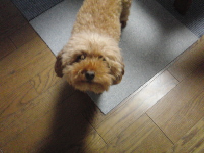 掃除機をかけ始めると モルトは遠くに避難します。男の子なのに 4頭の中で 1番の弱虫です。それでも 視線はママから離れません。掃除機を止めると 即 近寄ってきます。