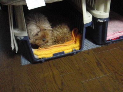 4頭分の クレートが あります。 飼い主的には クレートの主はきまってますが。 ワン的には どこに入ってもOKです。どこに入ろうかな とモルトが悩んでます。