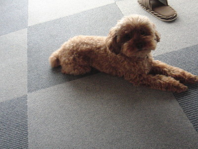 モルトはハムとスライスチーズをはさんだパンが好きです。 焼き上がりを待ってるのでしょうか。 前足をまっすぐのばしてまだかなあ といった感じです。