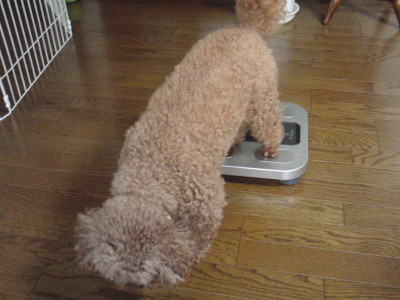 今朝のモカの体重は6.5㎏。明らかに太りすぎです。 体重計に乗ってます。 恥ずかしいから みんな見ないで ママ ちゃんと計れた?もう いいでしょ どっこいしょっと