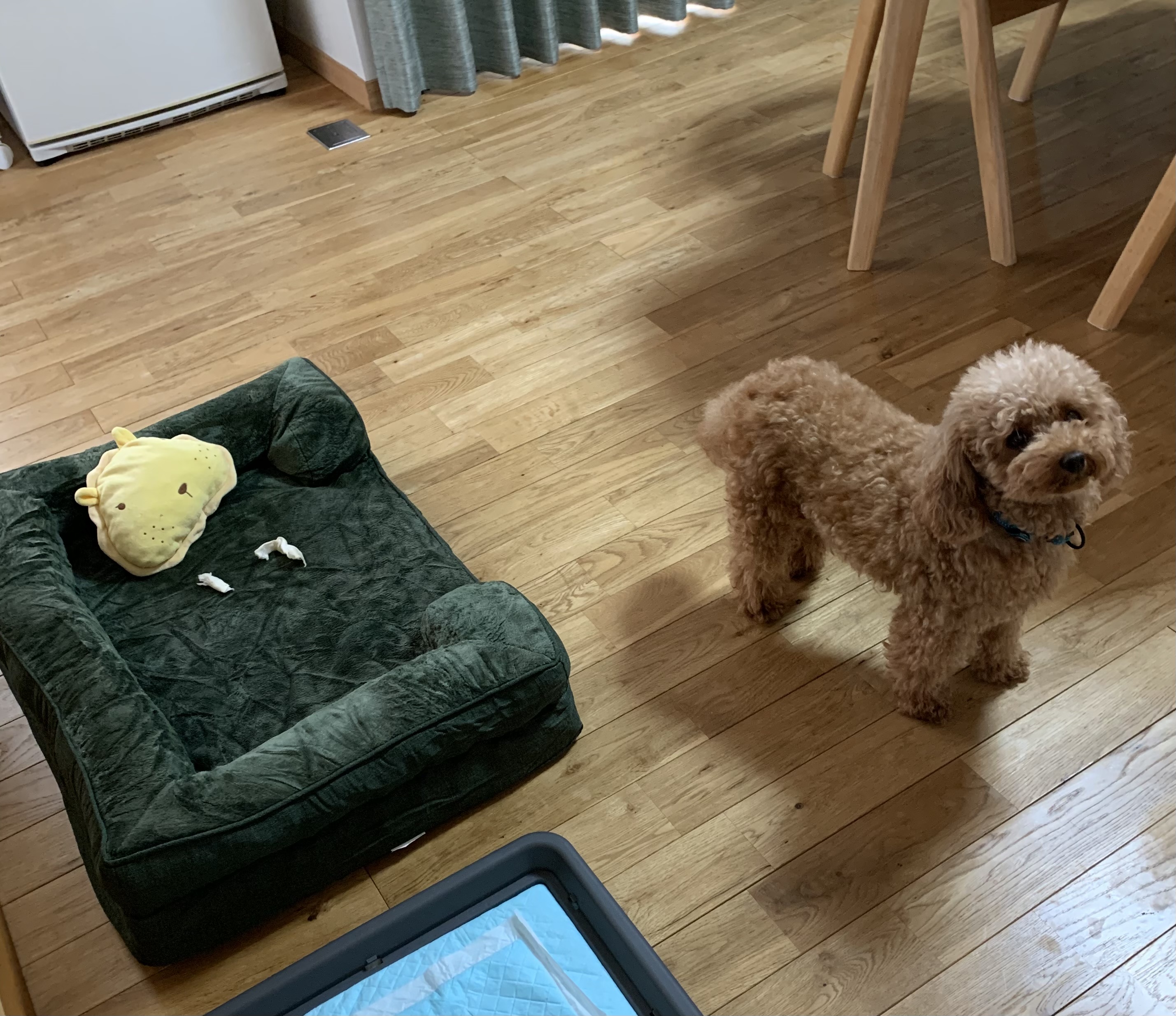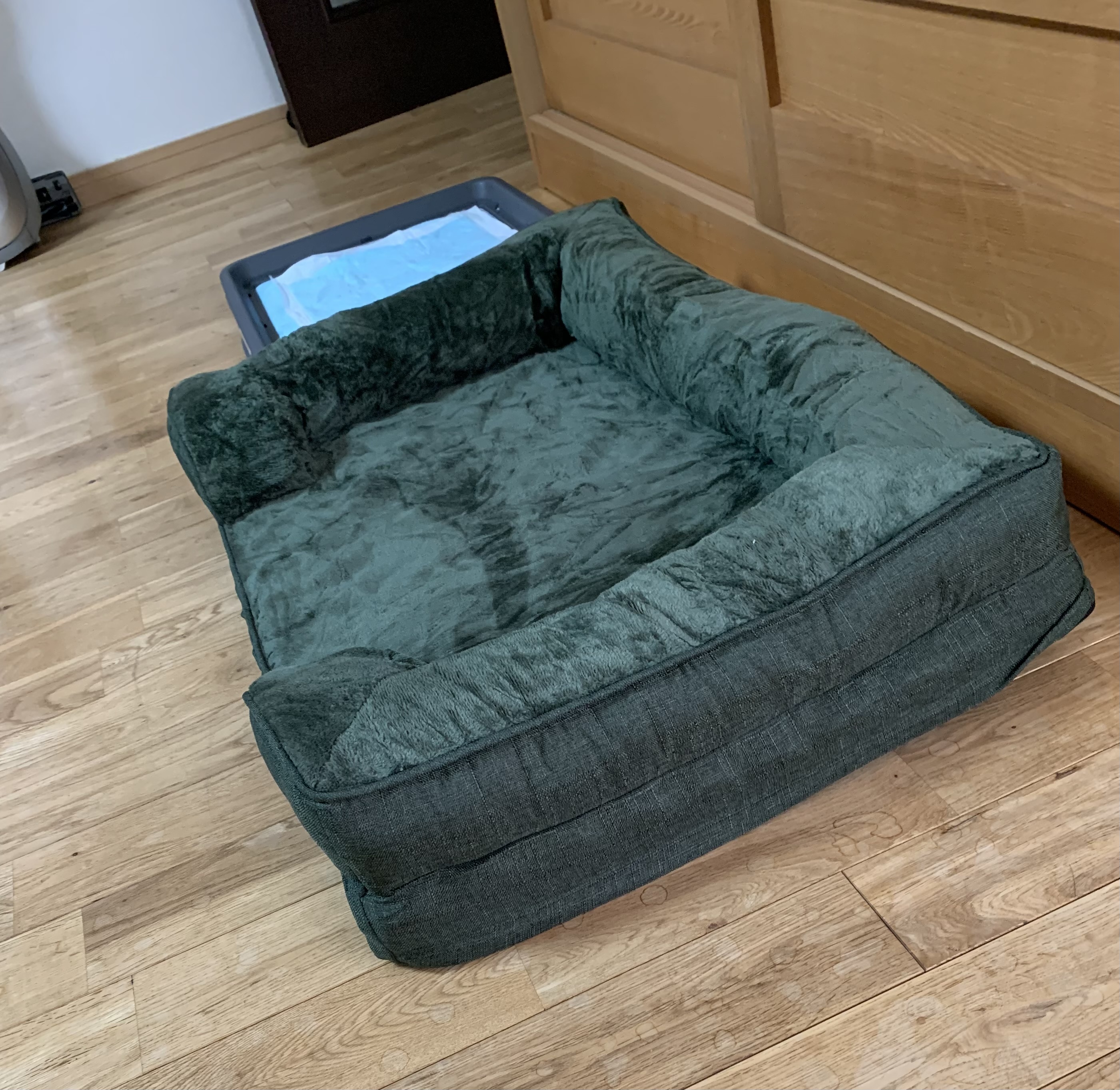 花ちゃんに 緑色のベットを買いました かなりベットの色に 悩みました