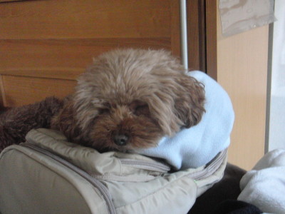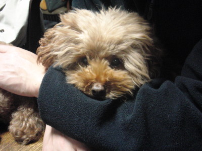 モルトのアップです。この頃 だいぶカメラに順応してきたモルトです。 パパの腕の中のモルト とってもモルトらしい表情です。 お留守番まえのモルトです。 ママ出かけるのか。つまんない。 いいよ ぼく こうしてるよ。