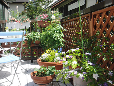 ベランダを少し広くしました。周囲を家々に囲まれていて中々1階には陽が届かず悲しい思いをしてました。そこで2階のベランダを広げたのです。結果 今まで叶わなかったお花を楽しむことができるようになってきました。