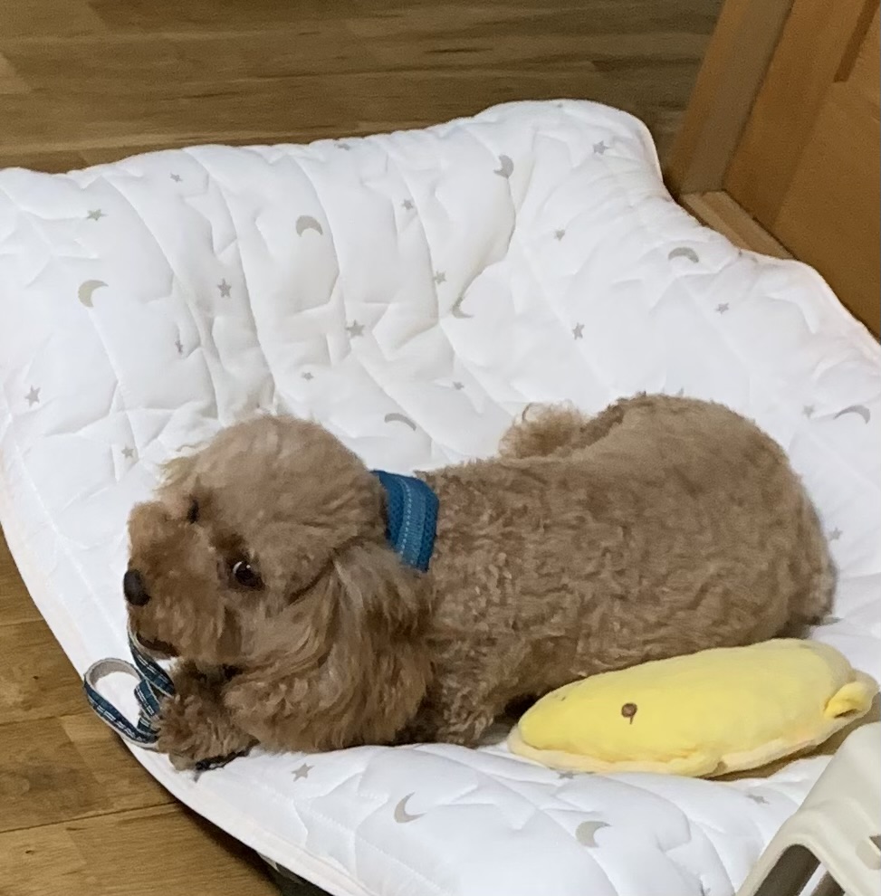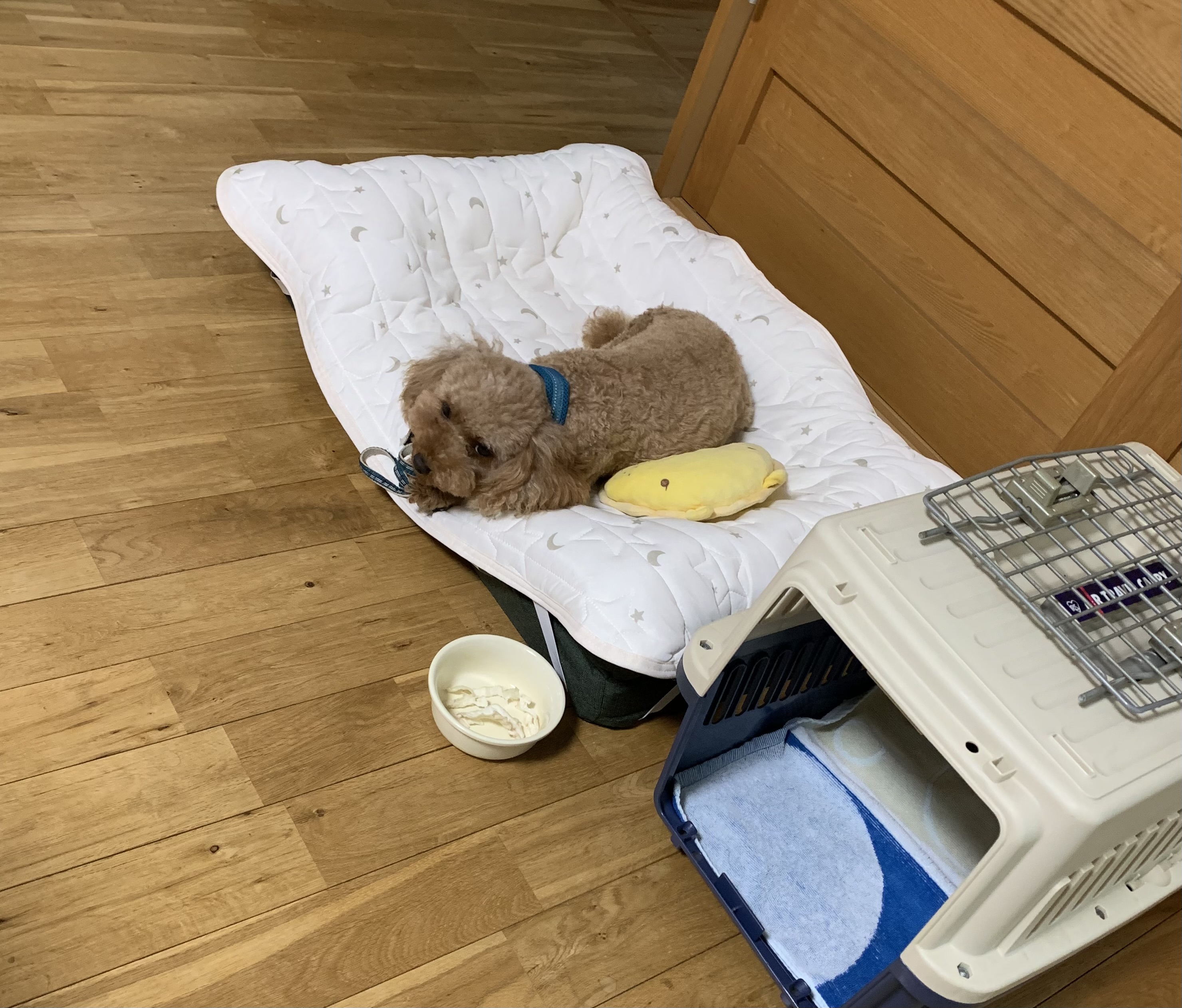 そんなこんなで 初めて食べるおやつに 花ちゃんの胃が