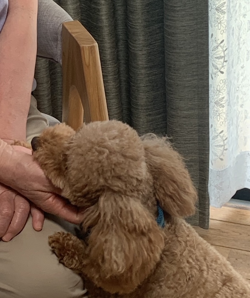 花ちゃんは 今は ママの膝の上でのんびりしです