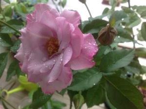慌てて軒下に取り込みましたが バラは大丈夫だったかな?