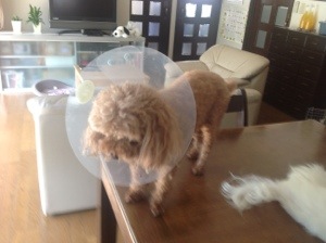 モカ母さん 皮膚を掻いて傷付けてしまい、病院に行って来ました。病理検査では 菌が少しみられるとのこと。三種類の飲み薬を 処方してもらいました。モカ母さん またもや エリザベスカラー生活を送らねばなりません。