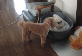 モカ自身は わんよりも 飼い主さんに興味がありそうに見受けられるのですが。
