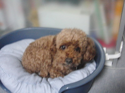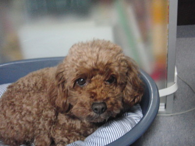 買い物に 行ったら スーパーの前で おとなしくご主人を待っていたレッドのトイプーちゃん。