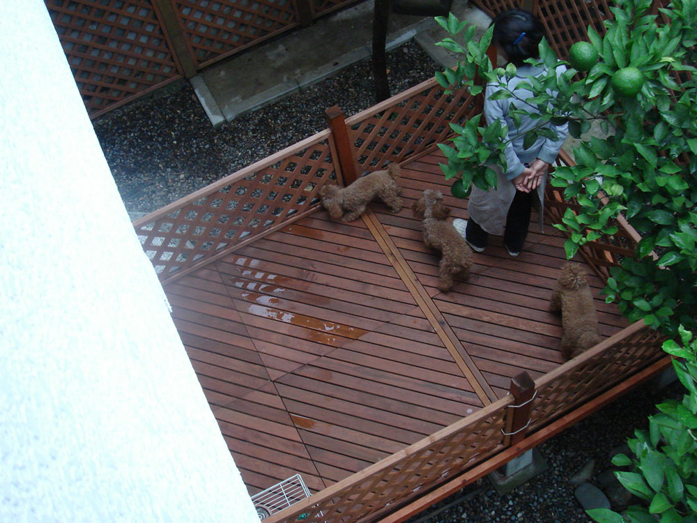 最近、モルトもカシュカシュも散歩でやたらとほえるようになったので、 ドッグトレーナーに来てもらいました。毎週特訓です。 と言うことで、3匹が良い子でいるときのスナップ。