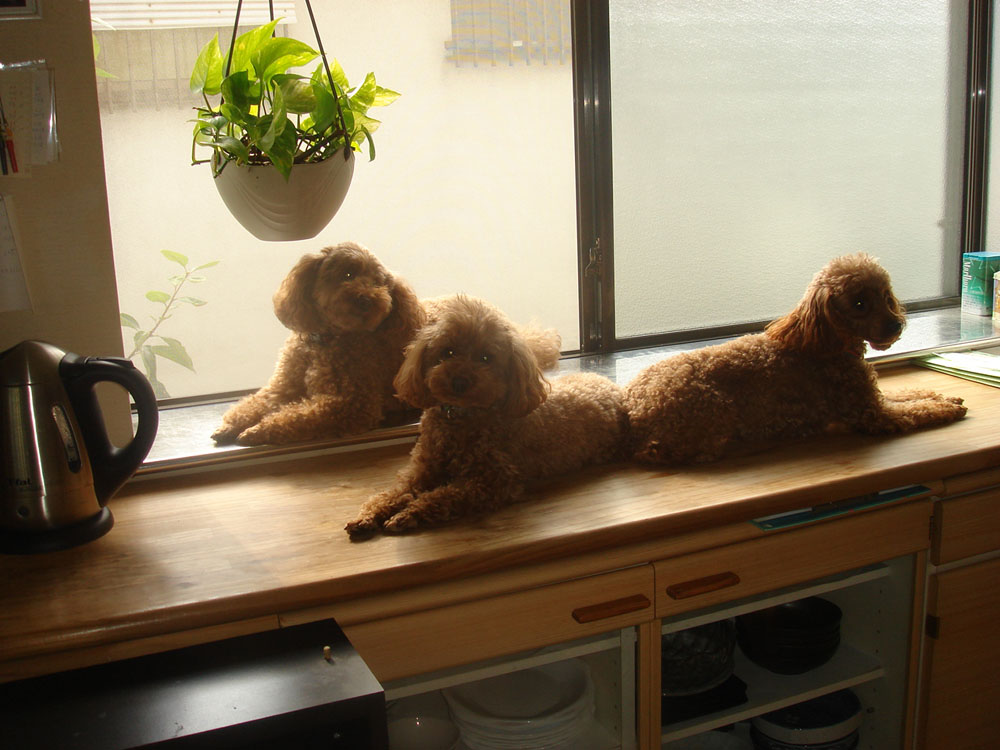 モカ(Moca)はトイプードルのレッド。2002年8月30日生まれの女の子。気が優しく散歩にいっても誰とでもすぐに仲良くなり、すぐにおなかを見せます。2005年10月6日に4匹のかわいい子供たちのお母さんになりました。2匹の子供は今は独立しました More »